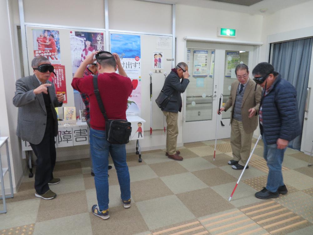 この施設は、市民のみなさんや、学校・地域・企業をはじめとする様々な団体・グループが人権研修や人権学習の際に利用できる施設として多く利用されています。施設の中には疑似体験コーナーがあり、車いす体験、視覚障害者体験などを実際に体験し、相手の身になる事の大切さを学びました。