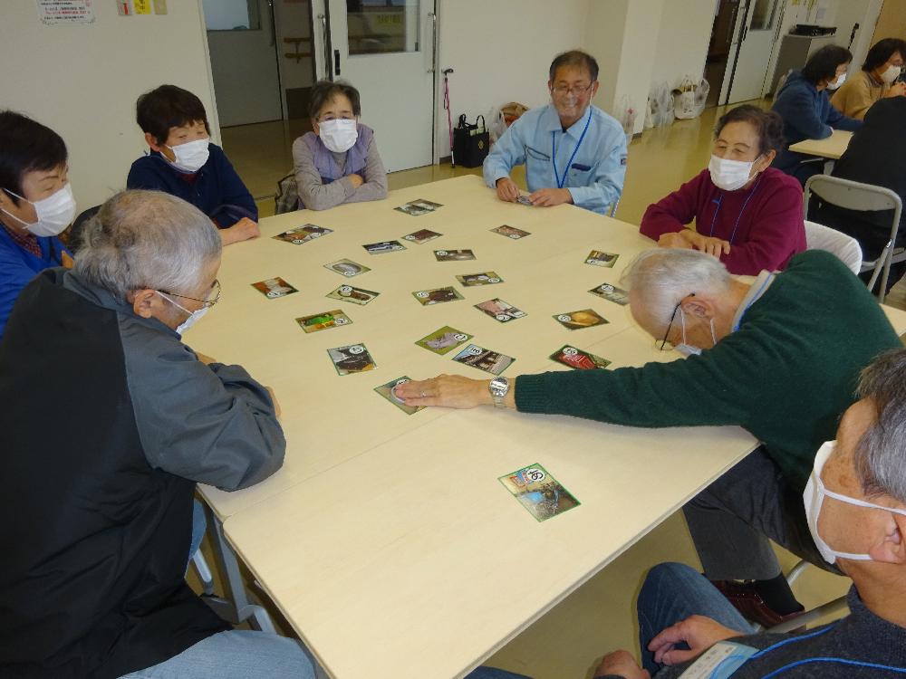 その後、学級生の皆さんが幼い頃に使っていたような懐かしい家財道具や日用品が描かれたかるたを使い、一足早くお正月気分で『かるた取り』をして交流を深めました。取り札を1枚取る度に「これこれ、家にあったわ!」「そうそう!こうして使ってた!」と昔話に花が咲き、講師のお二人も一緒に楽しい時間を過ごすことができました。