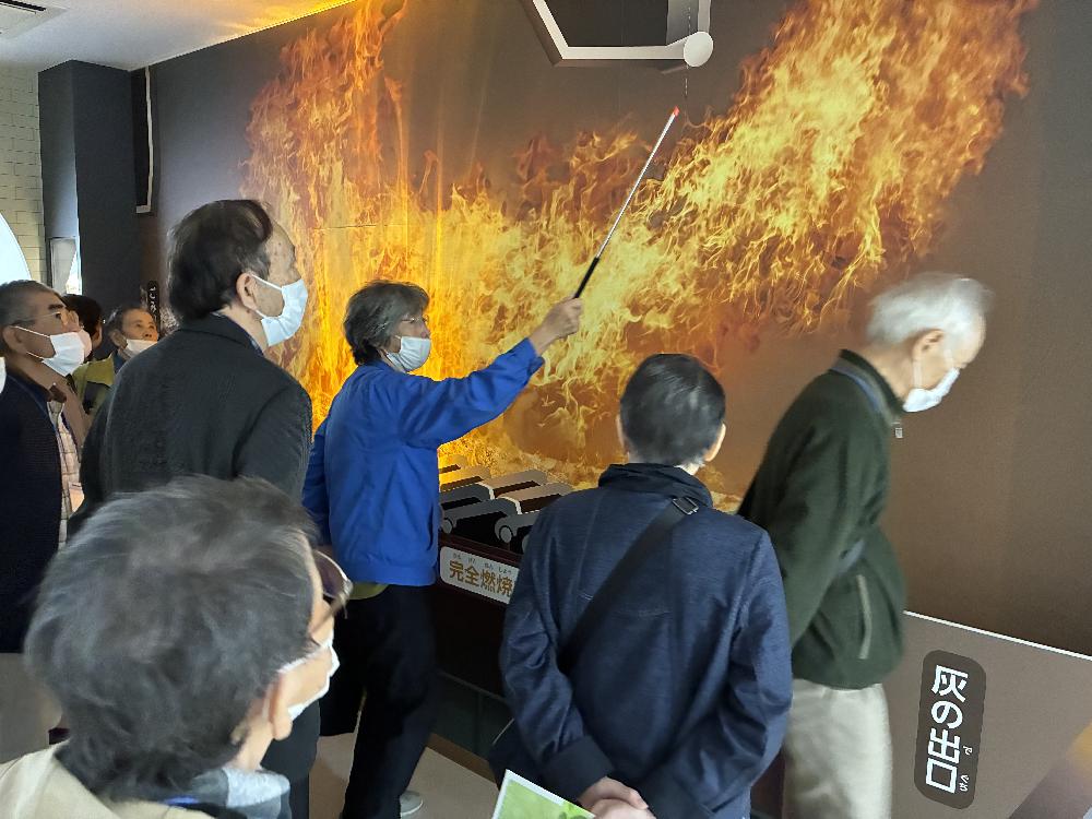 草津市立クリーンセンターでは、見学者の案内を担当されているグリーパーク草津(株)の平中さんから設備についての詳しい解説を聞きました。受講生さんからは、さまざまな質問が飛び交いました。