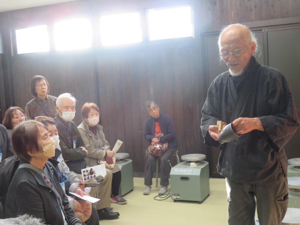 二代目の山元一真さんには、実際にろくろを回しながら粘土の扱い方を説明していただき、数人の受講生さんに体験してもらいました。指先、手の平で形を整えていくのは難しそうでしたが、良い経験ができたようでした。