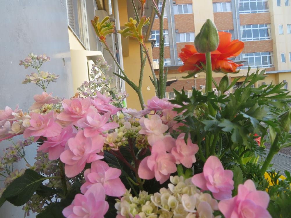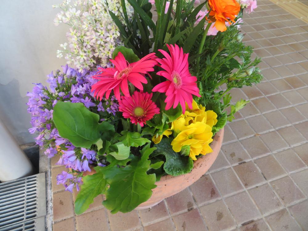 毎年、子ども育成部会では渋川小学校の六年生の皆さんの卒業と新一年生の入学をお祝いするために大きい鉢2個を地域玄関に飾っています。今回は親子寄せ植え教室でご指導いただきました水島たず子さんに寄せ植えをしていただきました。