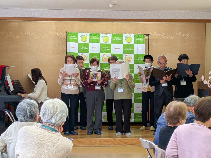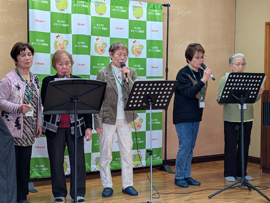 ティータイムに米粉クッキーでひと息つきながら、サークル発表パート2へと続きます。毎年プログラム冊子を作ってくださっている「パソコン」サークルの皆さんによる【令和7年度やすらぎ学級活動の軌跡】をスライドで振り返ったり、「カラオケ」サークルの皆さんの美しい歌声で、発表会を華やかに締めくくりました。