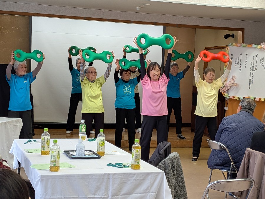 昼食のお弁当をいただいた後は、「歌の広場」と「3B体操」の皆さんのサークル発表です。講師の先生の呼びかけで、会場の皆さんも一緒に歌ったり身体を動かしたりして、会場全体で楽しいひと時を過ごしました。