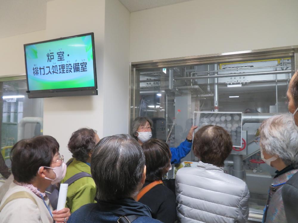 草津市立クリーンセンターでは、見学者の案内を担当されているグリーパーク草津(株)の平中さんから設備についての詳しい解説を聞きました。受講生さんからは、さまざまな質問が飛び交いました。