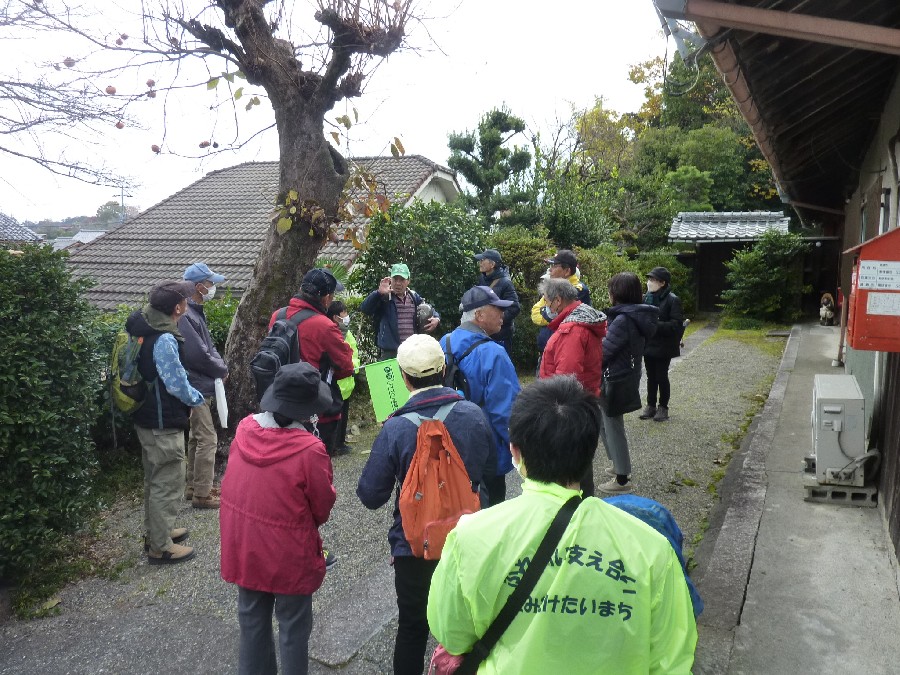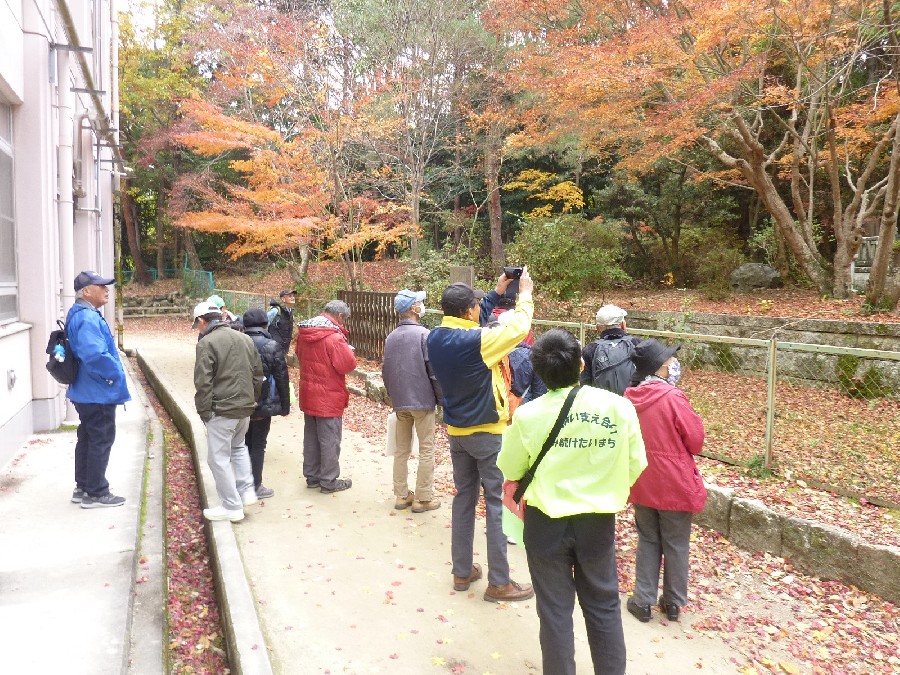 9時30分に志津小学校の神明宮に15名が集合し、日程や注意事項の説明を受け出発されました。始めに小学校南側のもみじや小槻神社を見学し、色とりどりの紅葉を楽しんでおられました。また、岡本丘陵では、水害の跡や「草津焼」の工房などを訪ね、水害時には死者が出たことや「草津焼」も今年で40周年を迎え、草津で名作の数々が作製されていることを学び、志津の文化と歴史に浸りました。