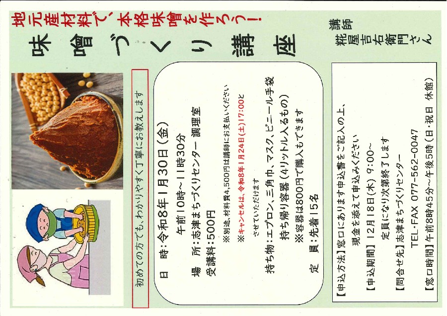 味噌づくり講座開催いたします!