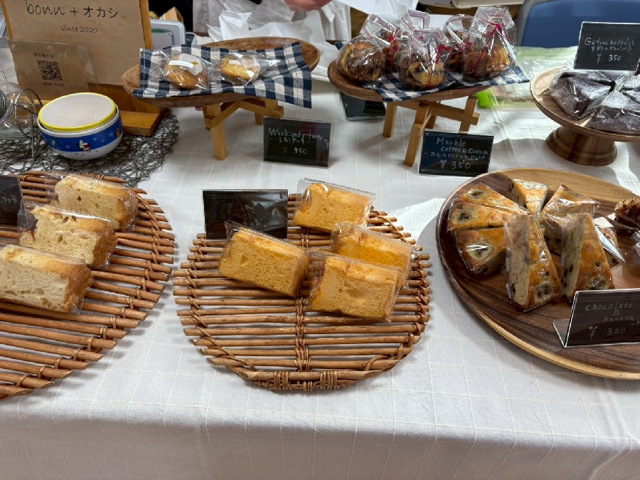 おいしそうな焼菓子や、華やかなクラフトバックやつまみ細工、手作りくじなどもありました!