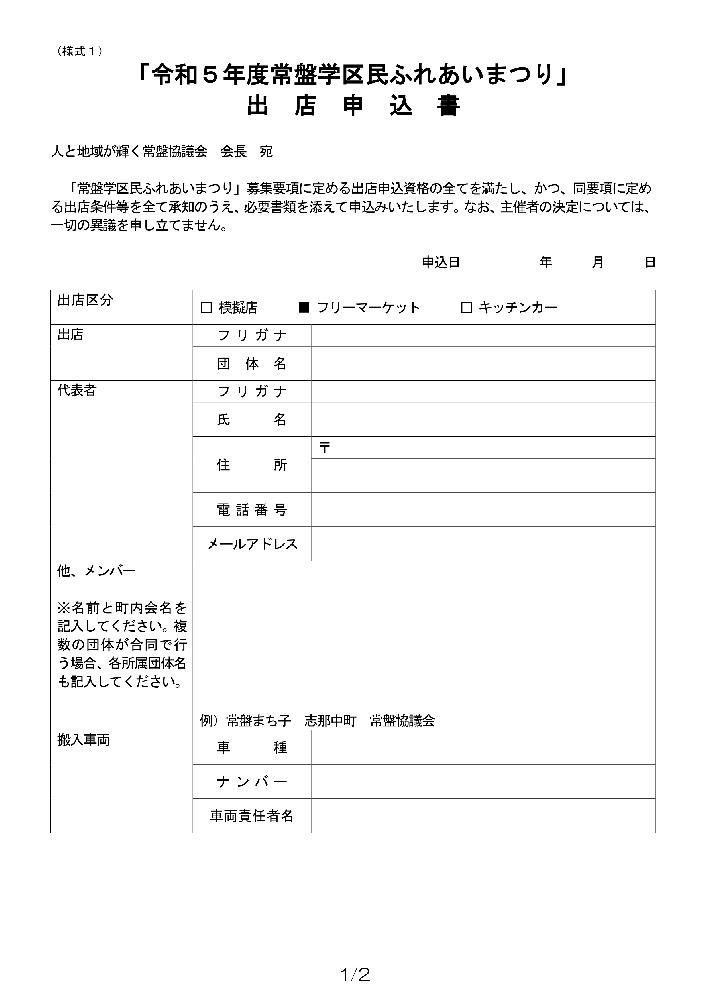 申込書は、常盤学区民ふれあいまつり実行委員会事務局(常盤まちづくりセンター窓口)でご用意しています。