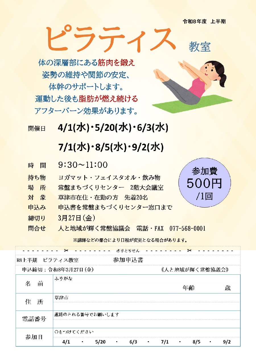 「ピラティス教室」のお知らせ