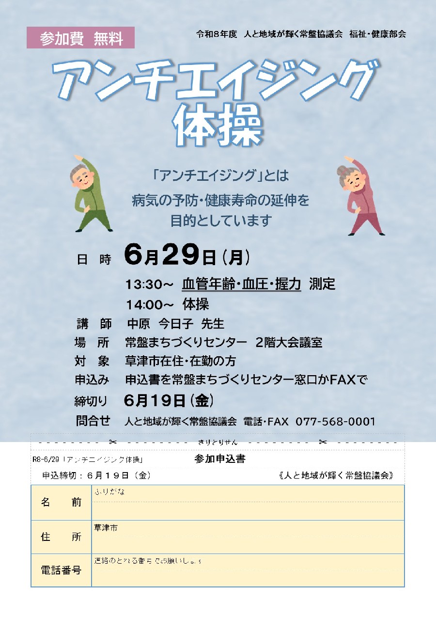 「アンチエイジング体操」参加者募集中
